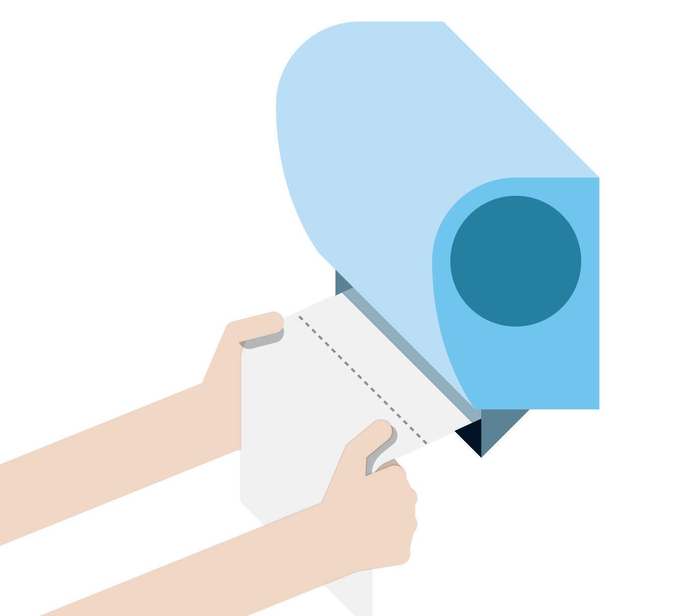 Einmal-Handtücher aus Papier und Stoff (Handtuchrollen) benutzen.