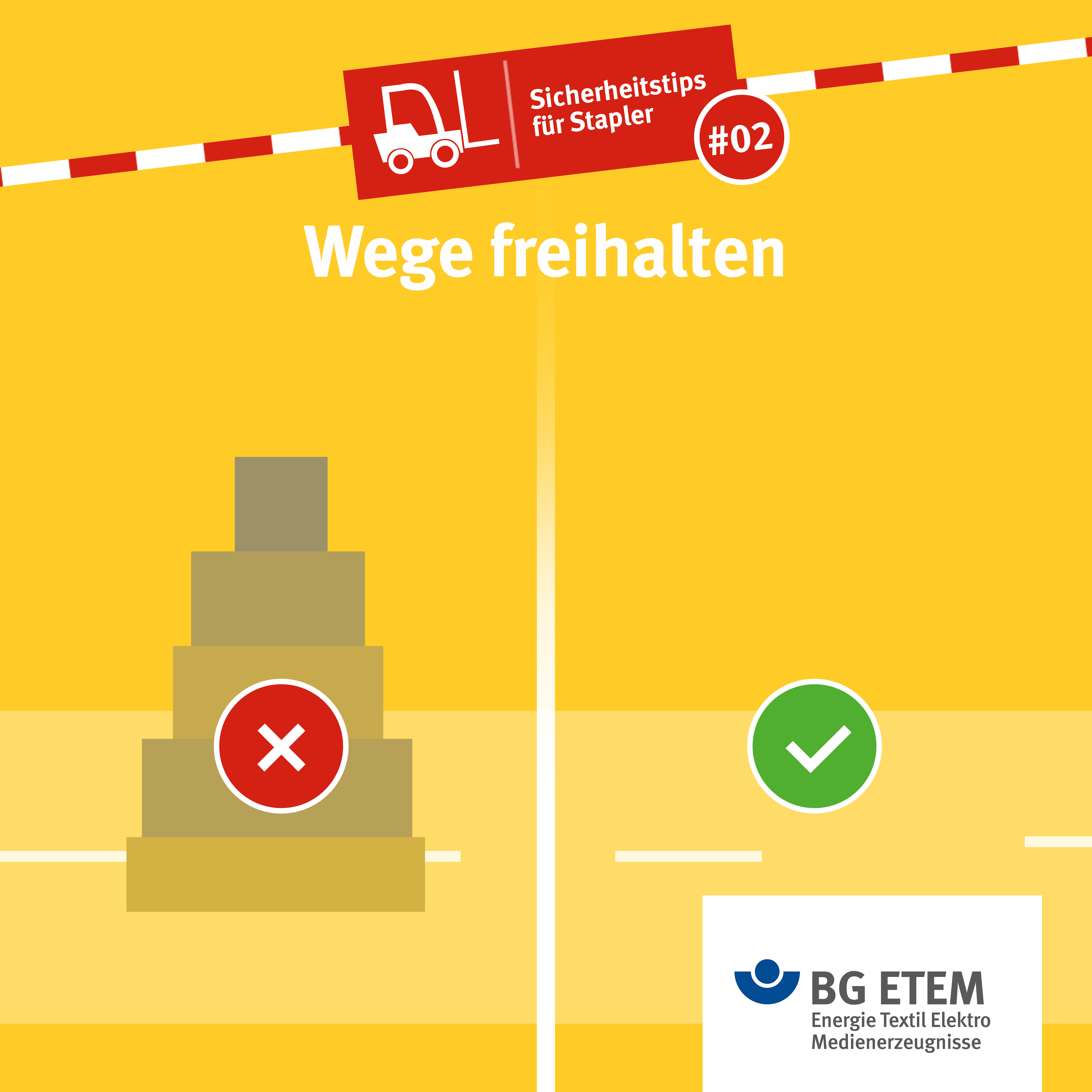 Wo regelmäßig Flurförderzeuge unterwegs sind, müssen die Wege frei bleiben. Auch nicht „mal eben kurz“ eine Palette dort abstellen. Unfallgefahr!