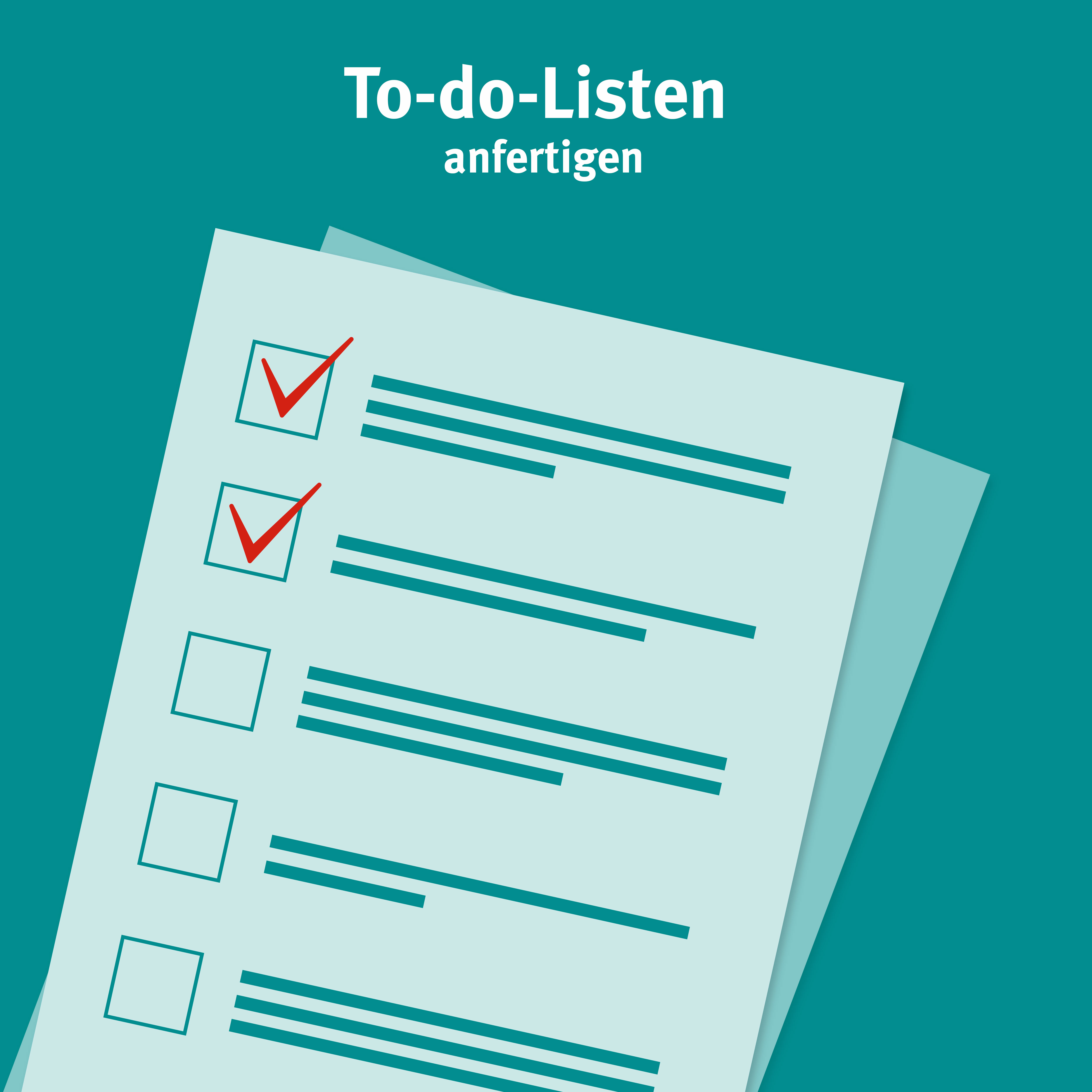 Anti-Stress Tipp: To-do-Listen anfertigen. Strukturiertes Arbeiten erleichtert den Bürotag! Prioritätenlisten helfen, den Überblick zu behalten.