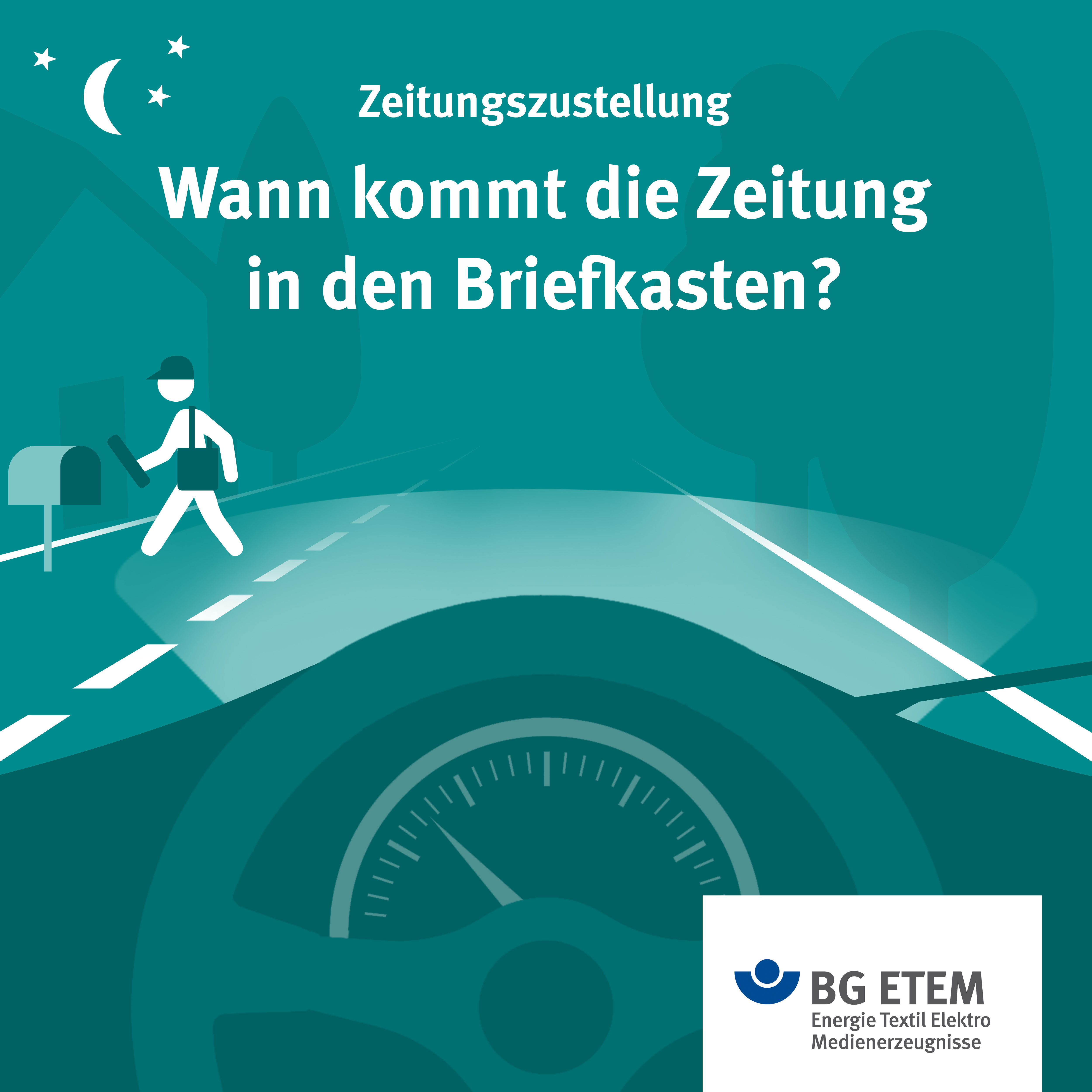 Jede Nacht, bei Wind und Wetter, sind Menschen unterwegs, damit wir pünktlich unsere Morgenlektüre bekommen. Doch vor allem im Herbst und Winter steigt das Unfallrisiko für Zeitungszusteller. Vor allem die lang anhaltende Dunkelheit ist ein Hauptrisiko dieser Tätigkeit. Schnell werden die Zusteller trotz reflektierender Bekleidung von Autofahrern übersehen, da diese um diese Zeit gar nicht mit Radfahrern oder Fußgängern rechnen. Wir alle können aber den Weg für Zeitungszusteller etwas sicherer machen. Also, Augen auf, auch wenn die Straßen scheinbar menschenleer sind.