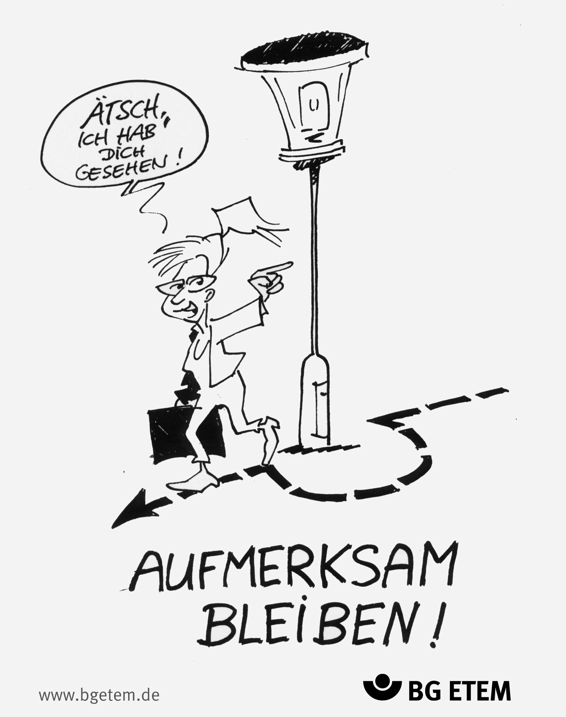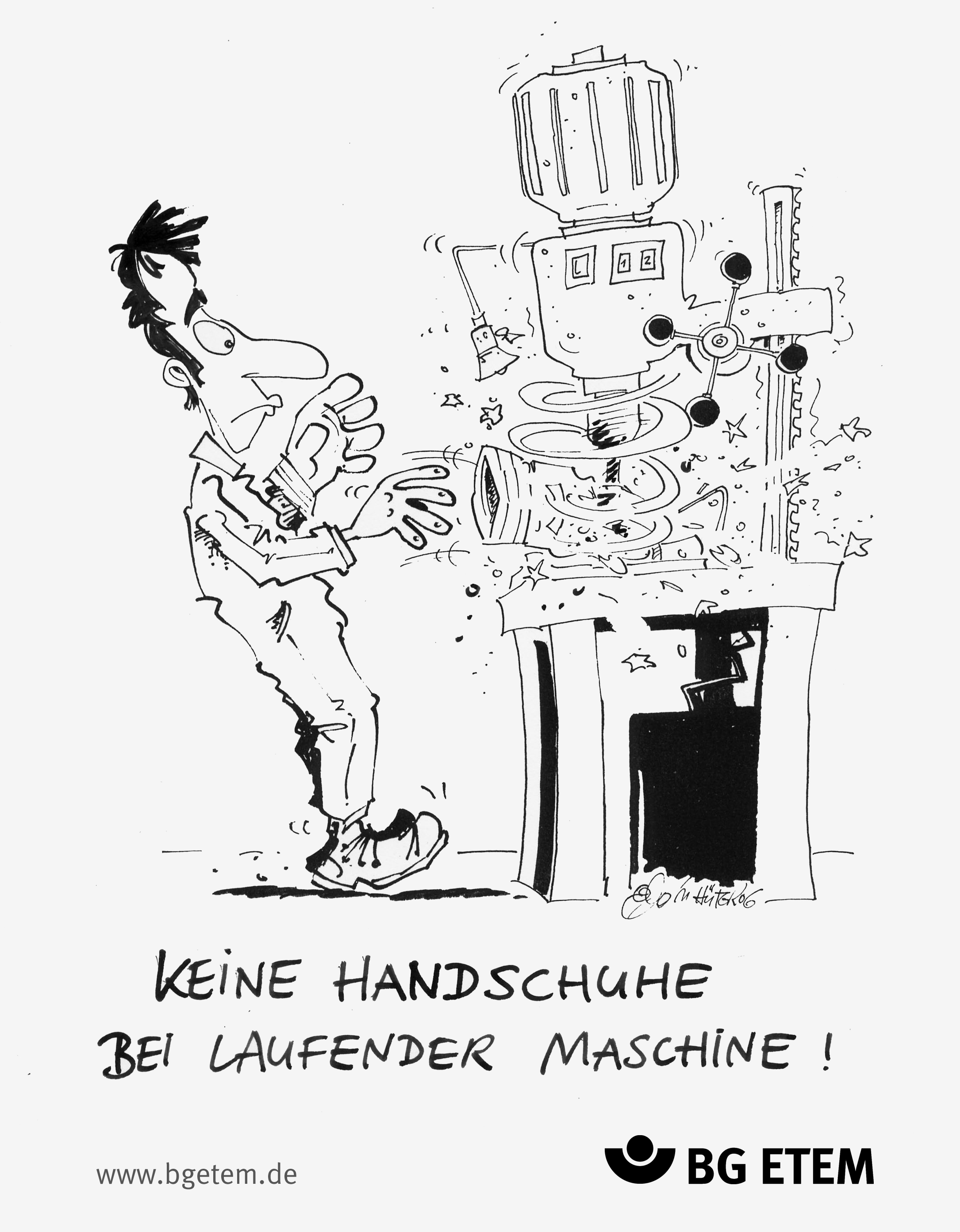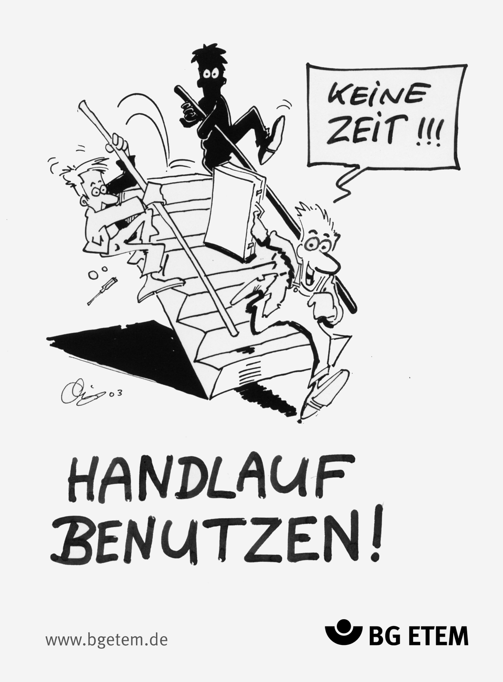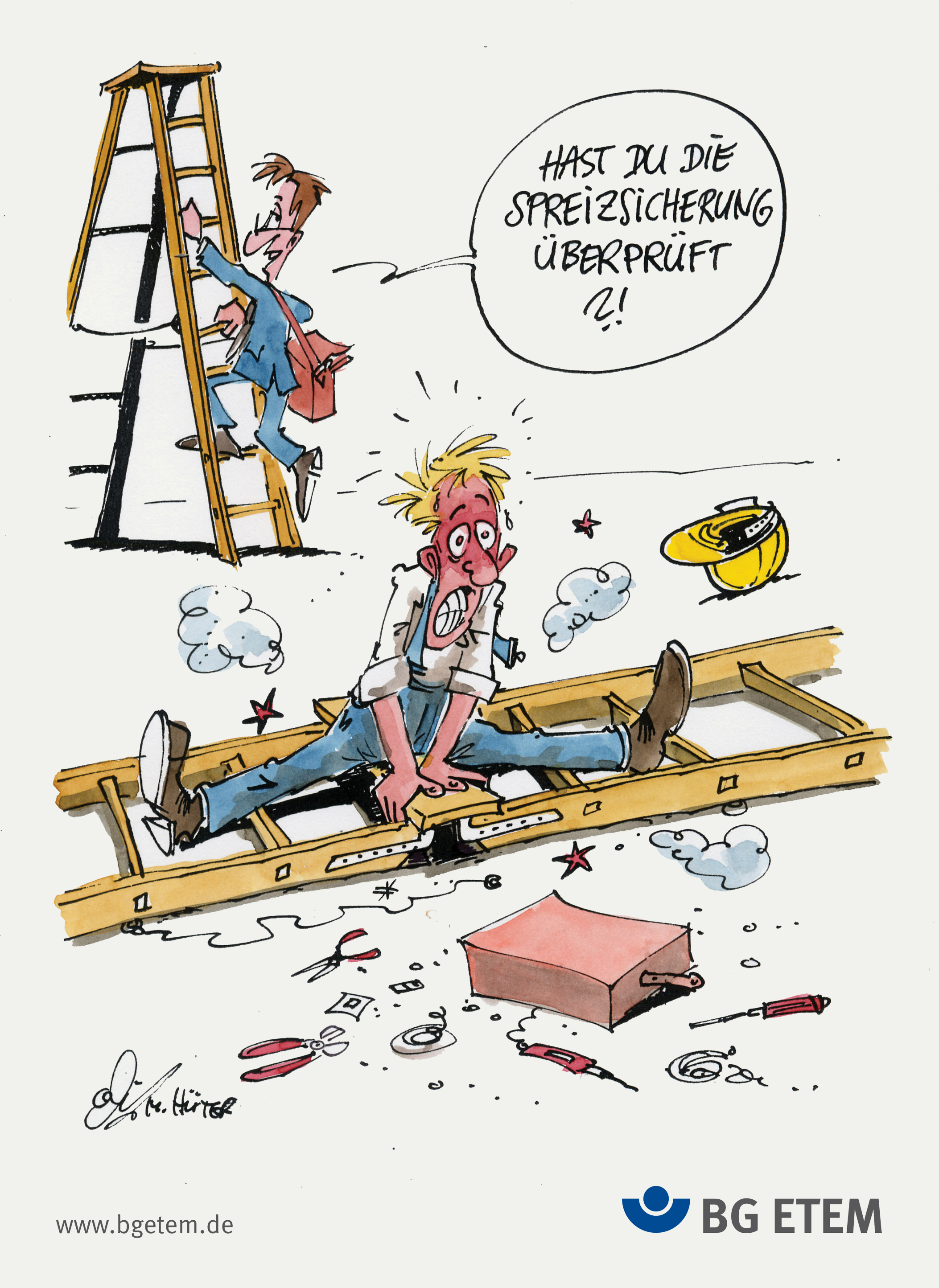 Nutzungsbedingungen: Die Karikaturen sind urheberrechtlich geschützt. Mitgliedsbetriebe der BG ETEM können die Karikaturen für innerbetriebliche Zwecke nutzen (z. B. Gesundheitstage, Schulungen zur Arbeitssicherheit, etc). Jegliche kommerzielle Nutzung, ob direkt oder indirekt, sowie öffentliche Verbreitung (z. B. Print oder online) sind nicht gestattet.