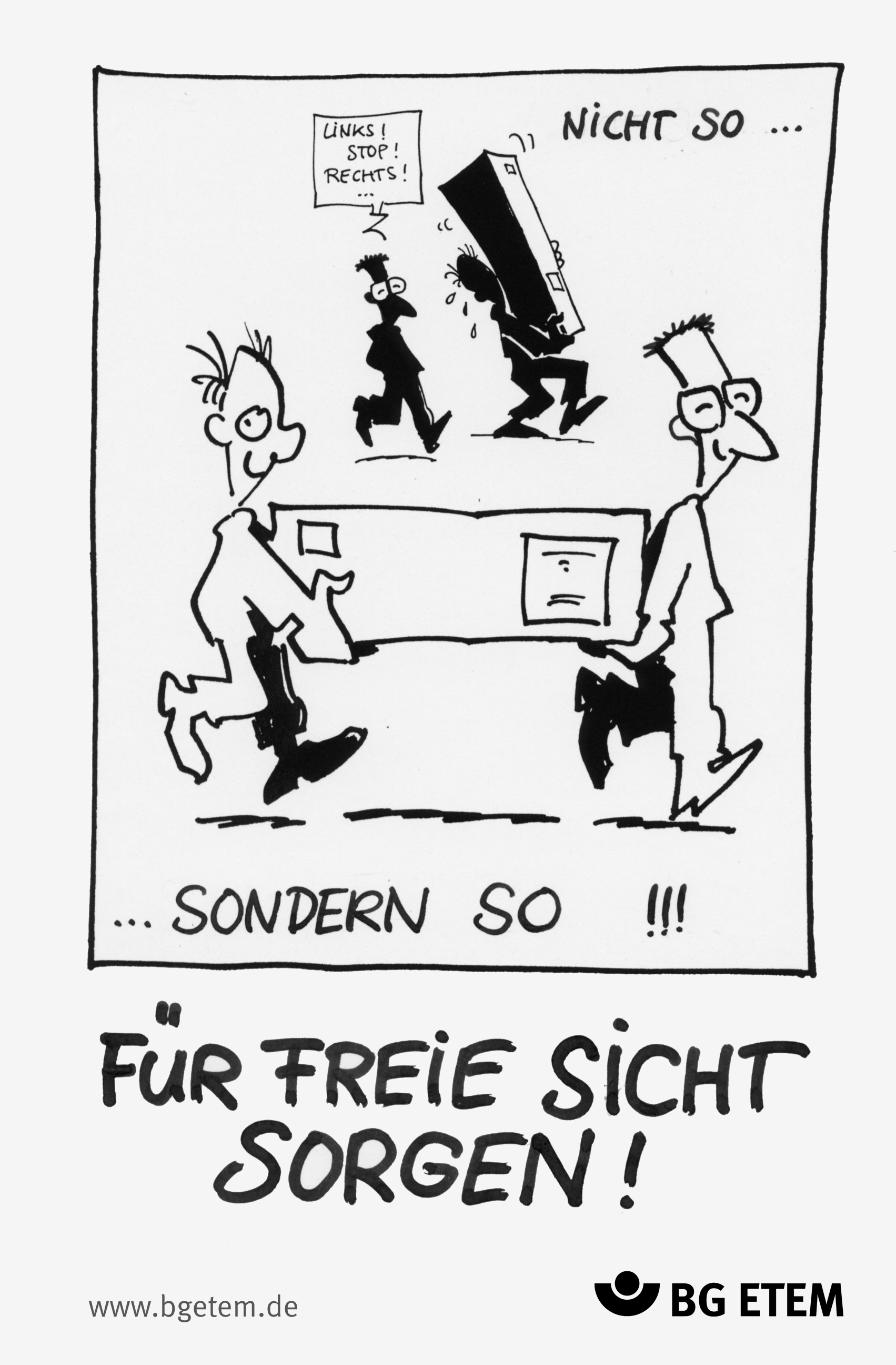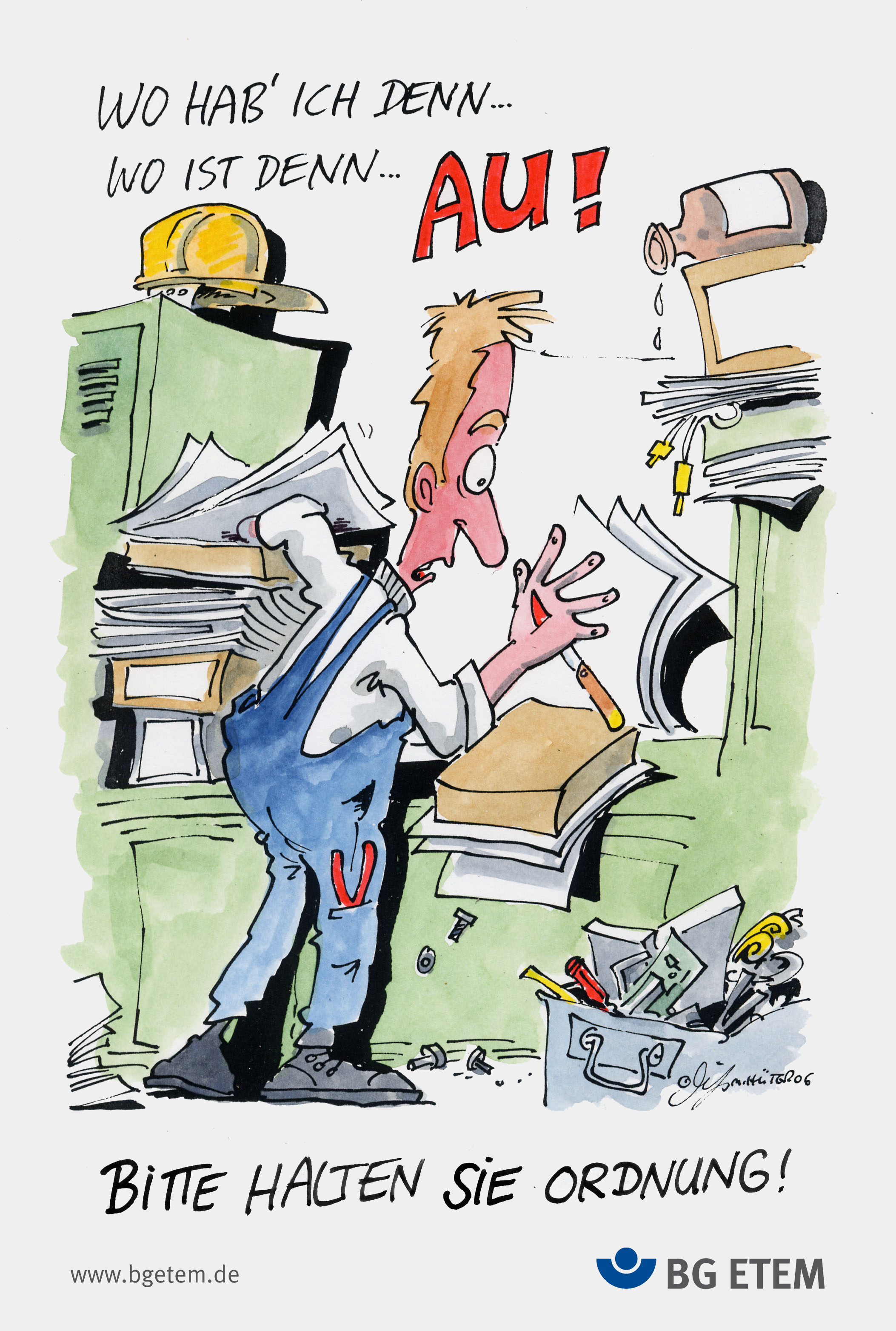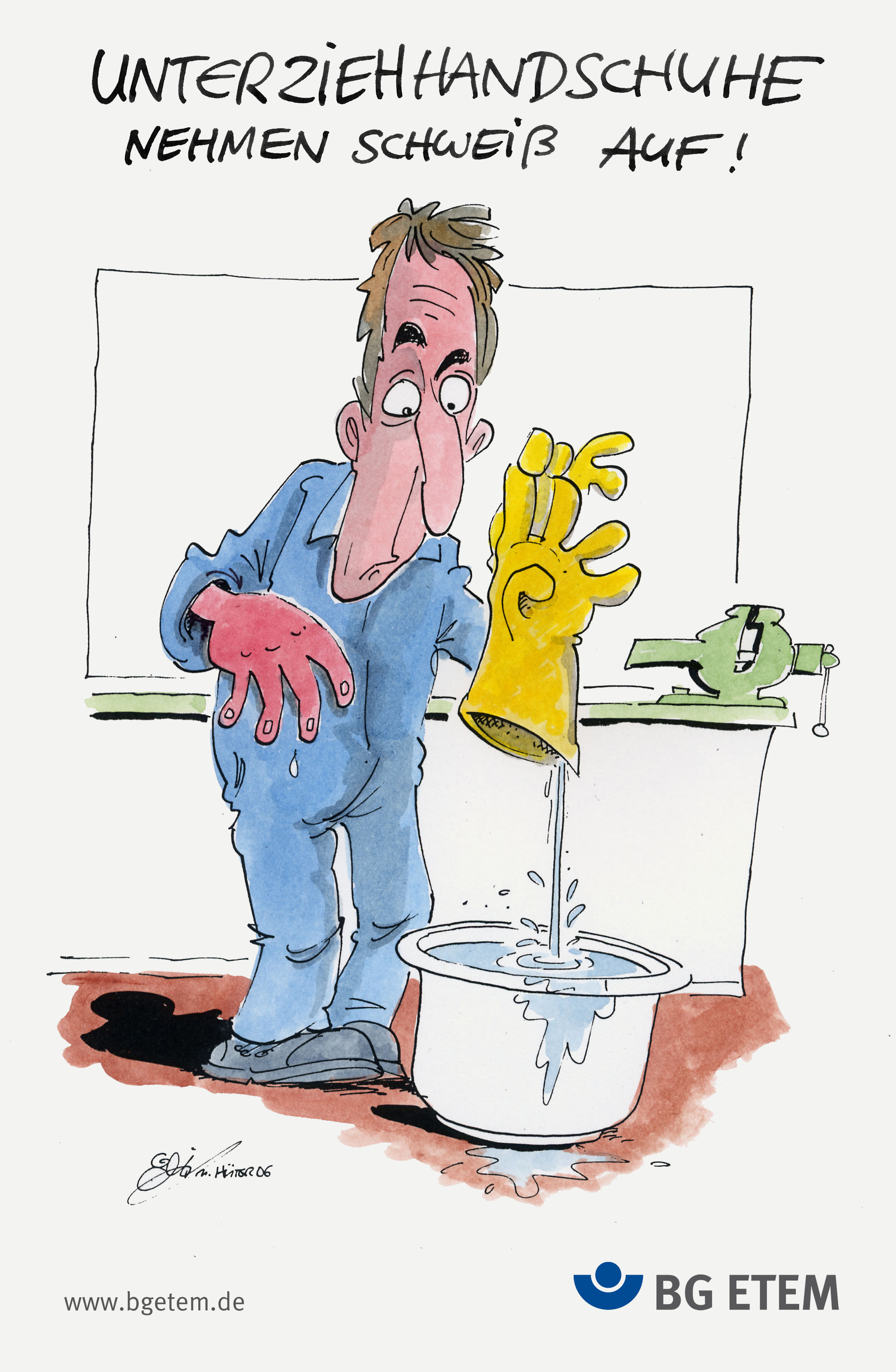 Nutzungsbedingungen: Die Karikaturen sind urheberrechtlich geschützt. Mitgliedsbetriebe der BG ETEM können die Karikaturen für innerbetriebliche Zwecke nutzen (z. B. Gesundheitstage, Schulungen zur Arbeitssicherheit, etc). Jegliche kommerzielle Nutzung, ob direkt oder indirekt, sowie öffentliche Verbreitung (z. B. Print oder online) sind nicht gestattet.