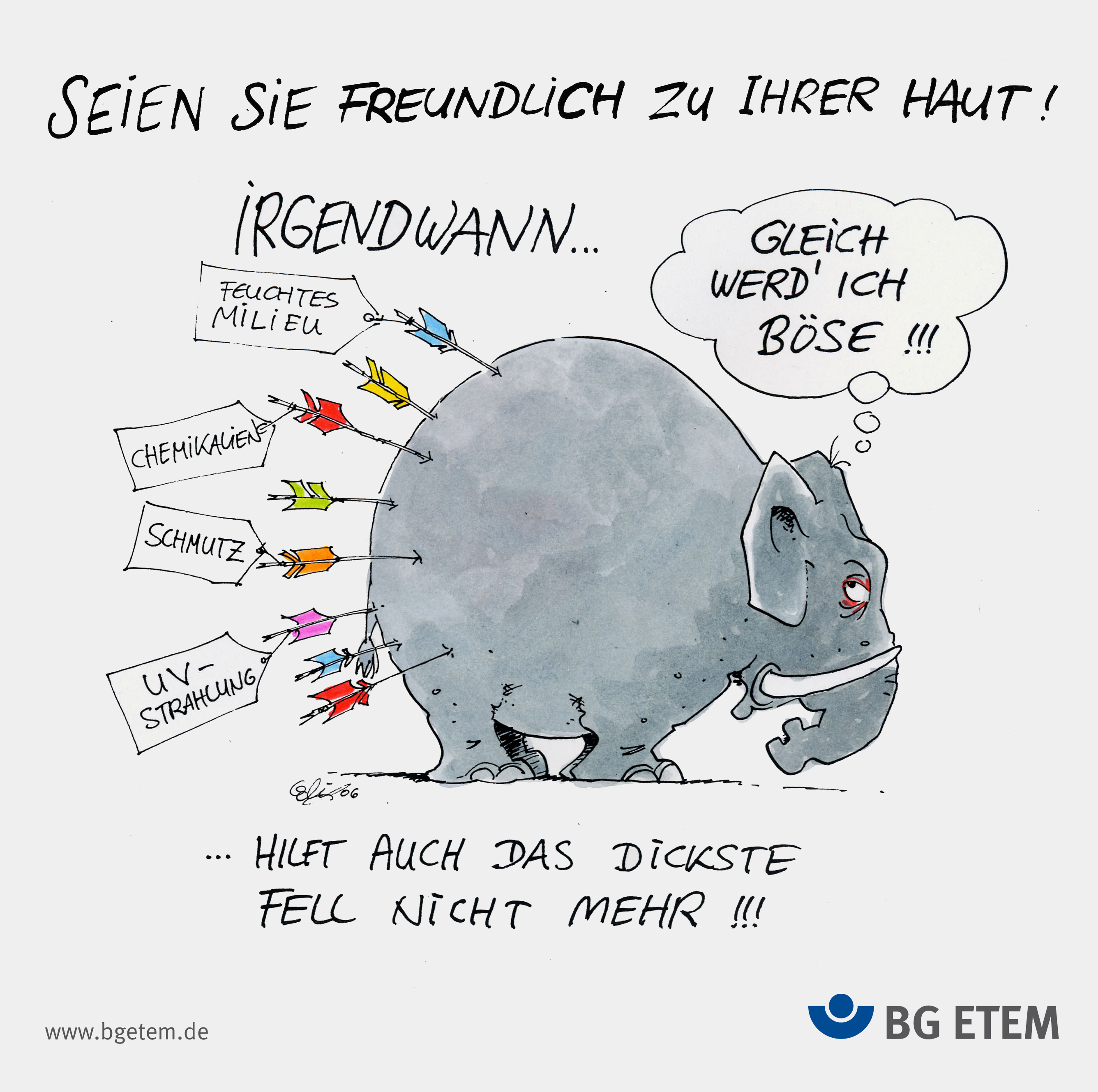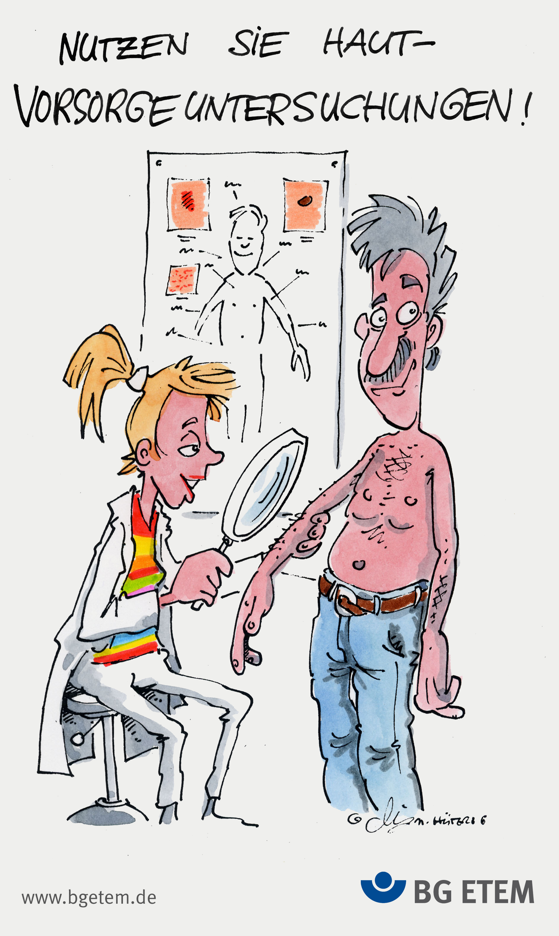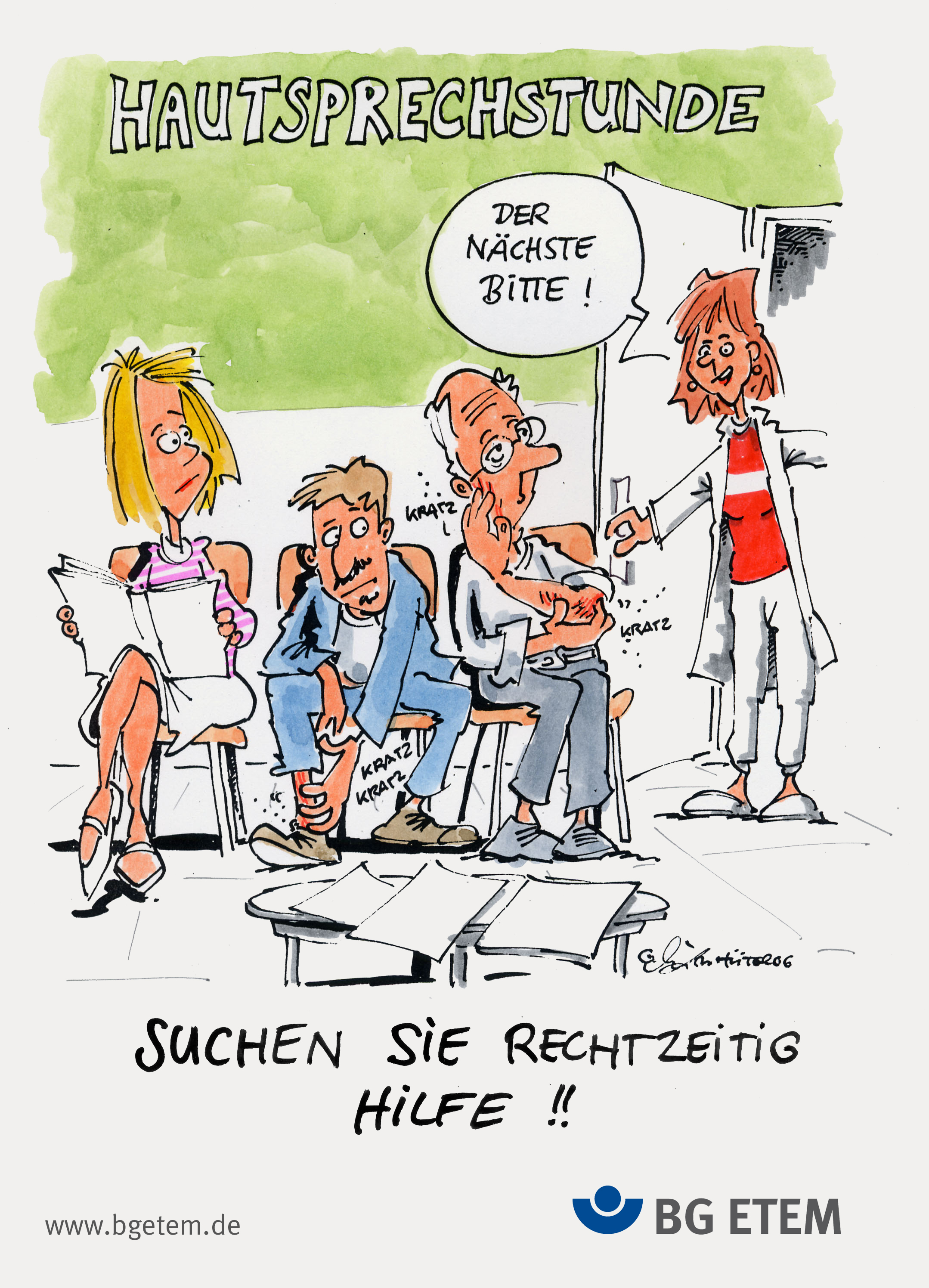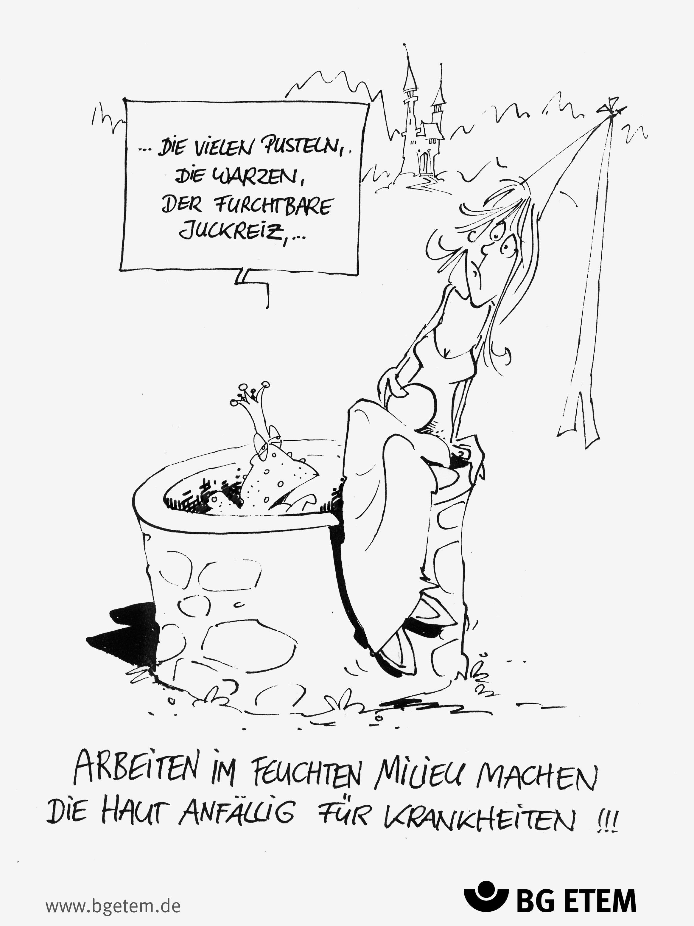 Nutzungsbedingungen: Die Karikaturen sind urheberrechtlich geschützt. Mitgliedsbetriebe der BG ETEM können die Karikaturen für innerbetriebliche Zwecke nutzen (z. B. Gesundheitstage, Schulungen zur Arbeitssicherheit, etc). Jegliche kommerzielle Nutzung, ob direkt oder indirekt, sowie öffentliche Verbreitung (z. B. Print oder online) sind nicht gestattet.
