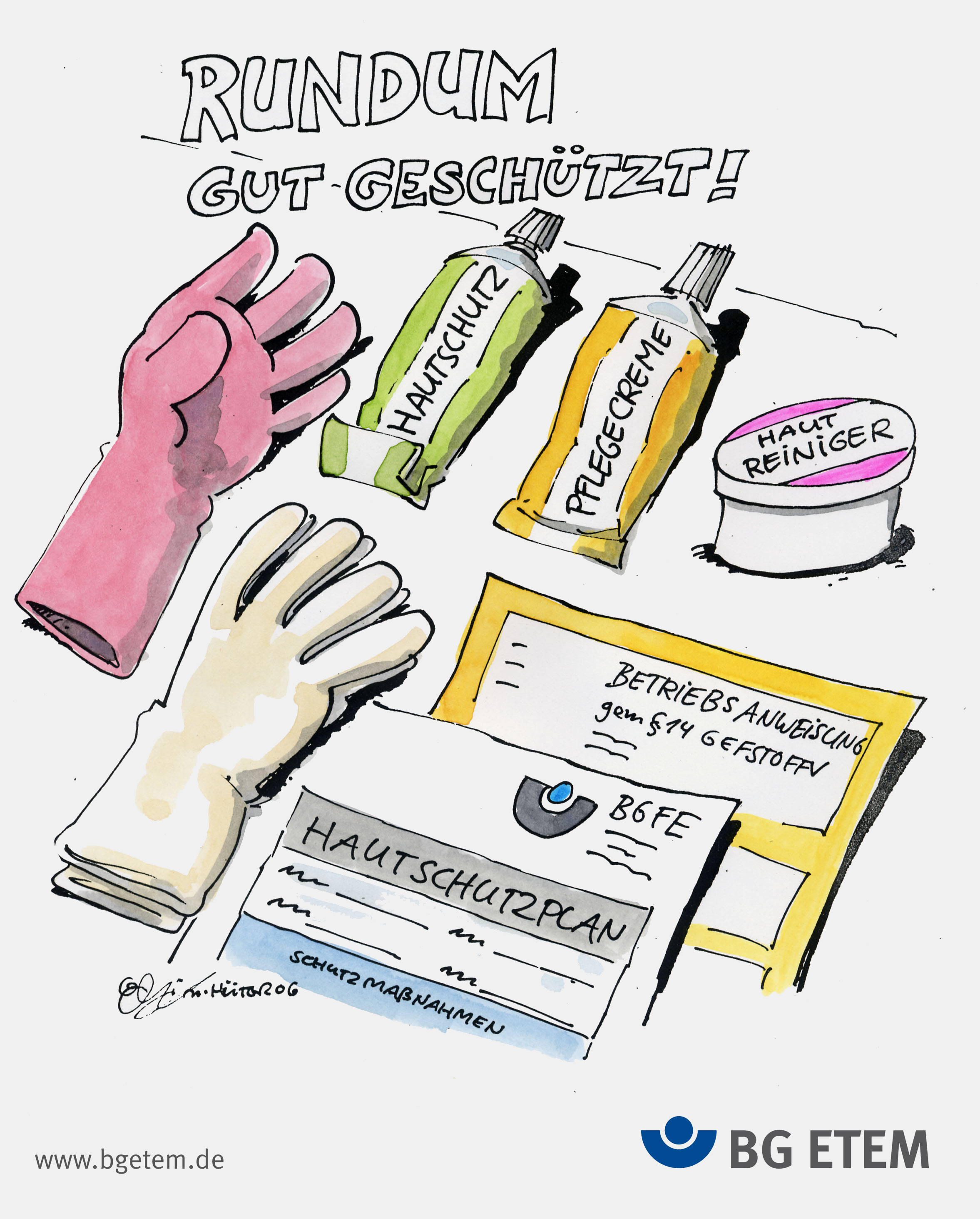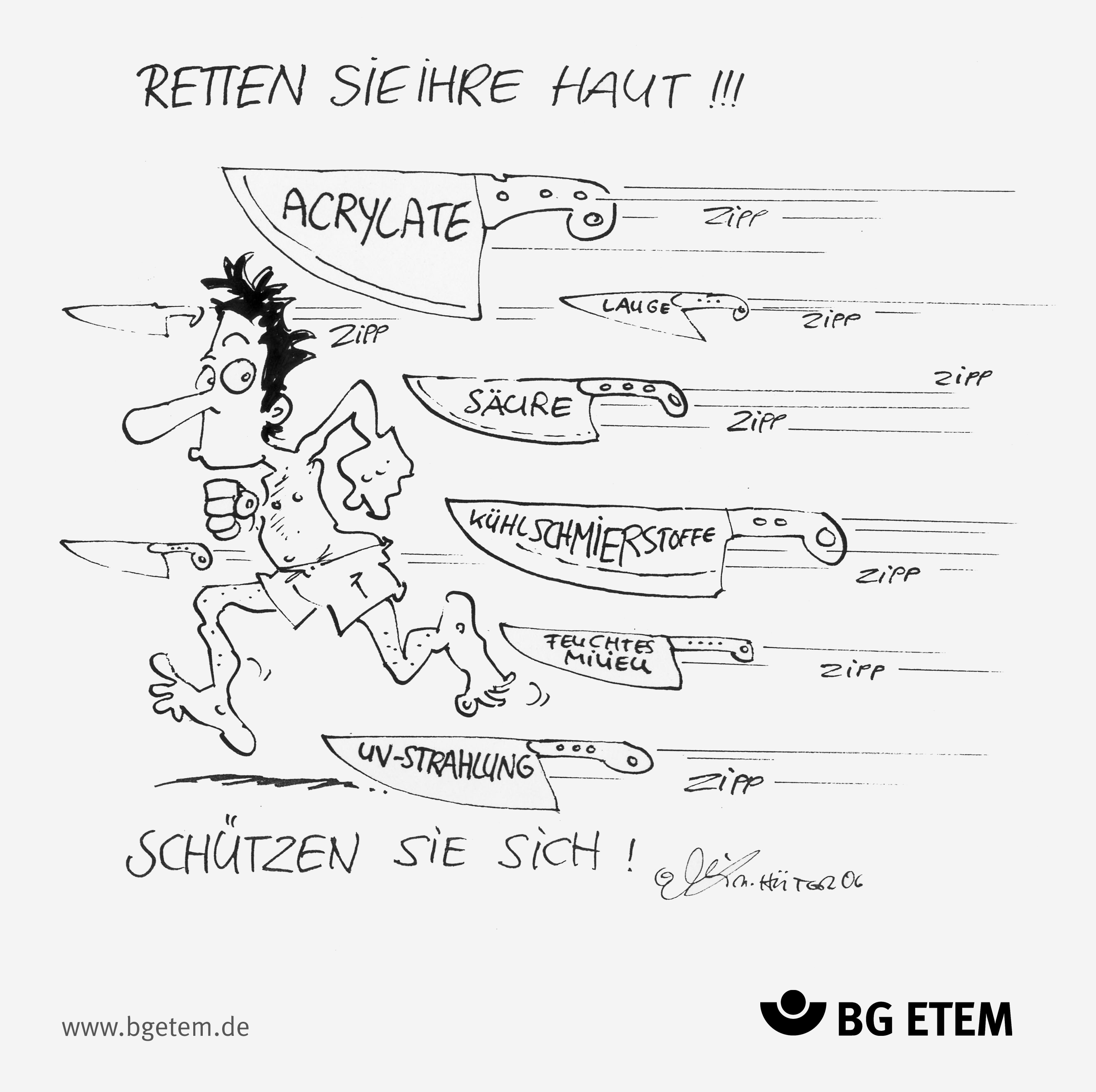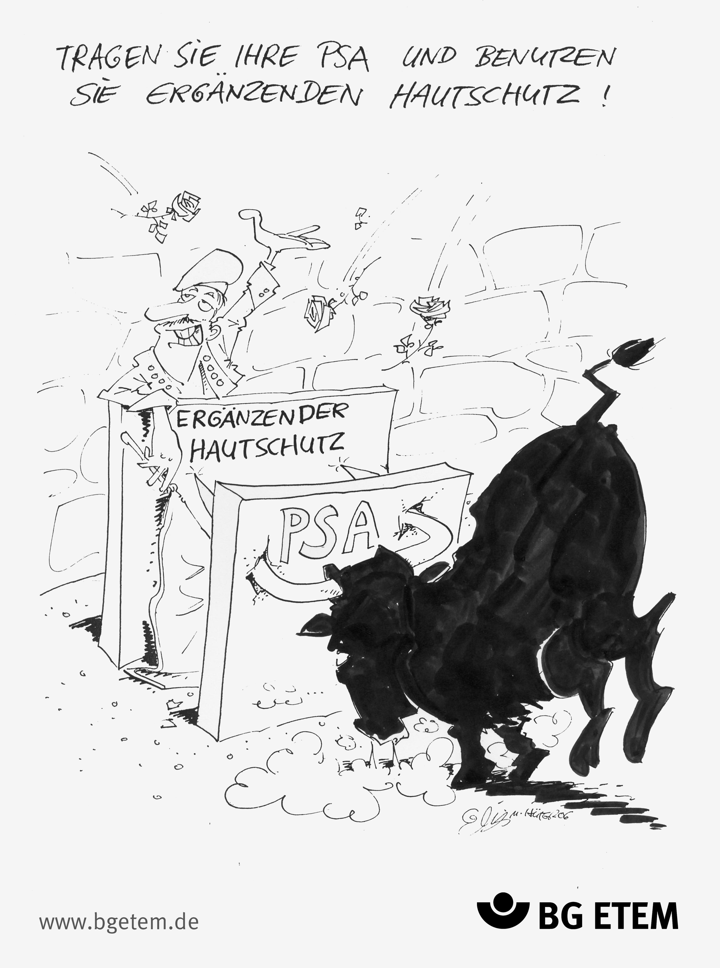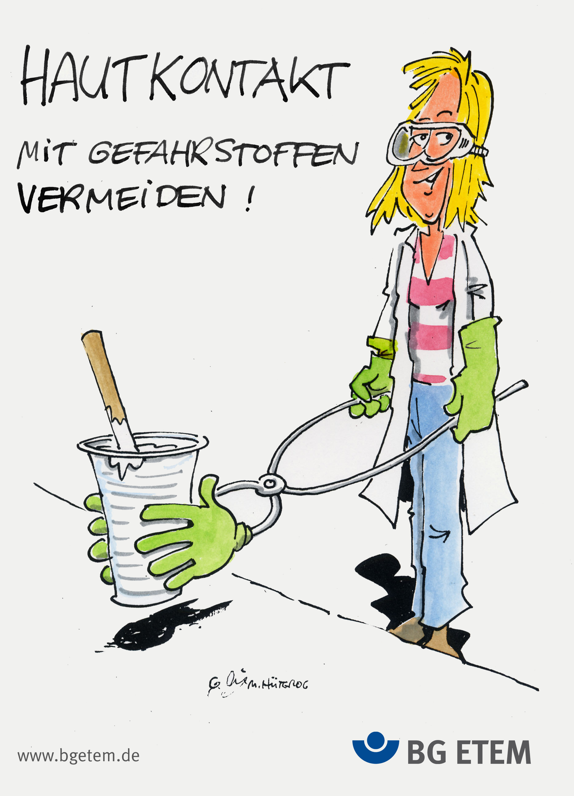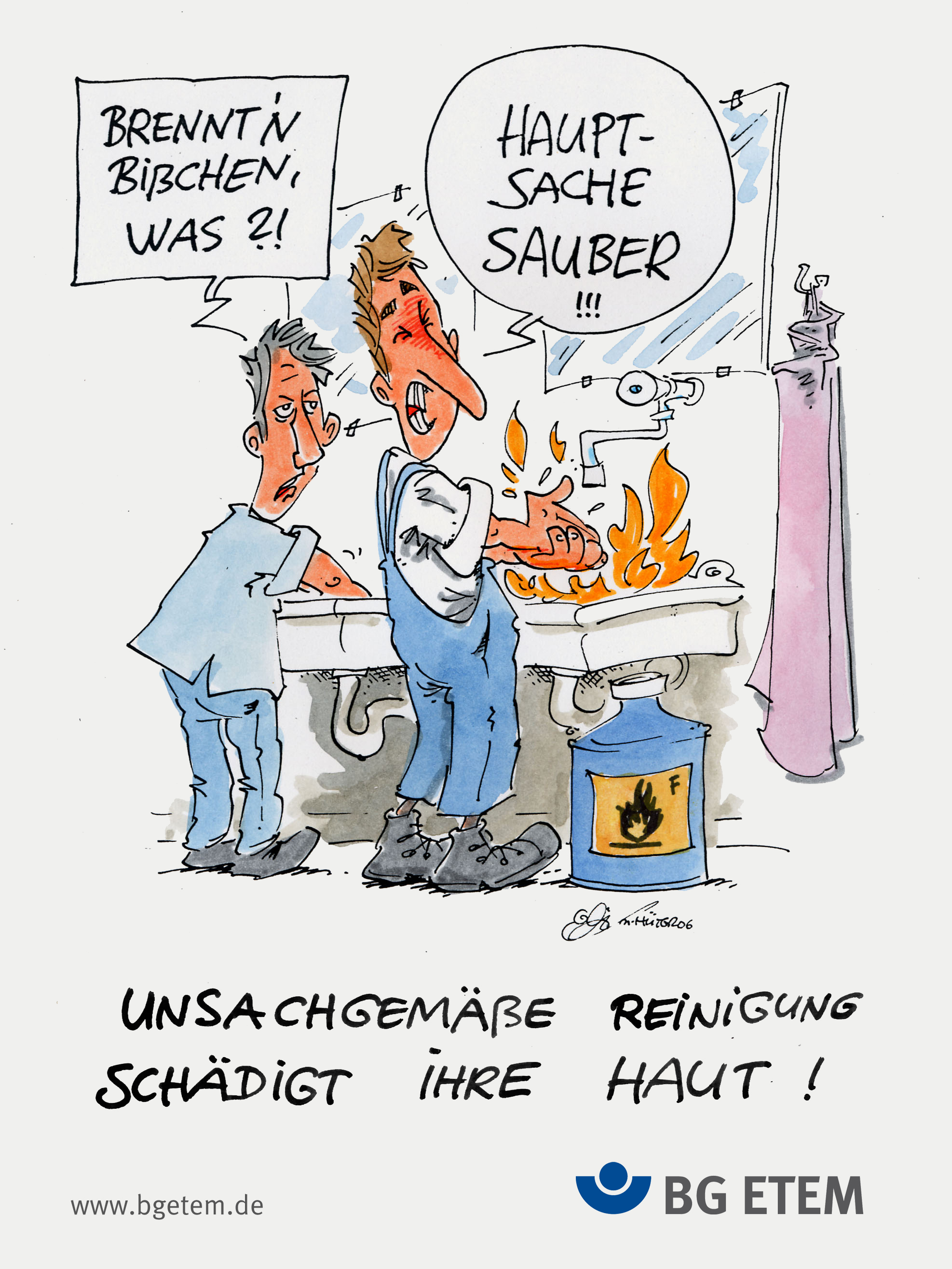 Natürlich ist Arbeitsschutz eine ernste Sache - wer wüsste das besser als die Berufsgenossenschaft? Und dennoch! Diese Karikaturen sind ein Blickfang, der auf heitere Weise richtiges Verhalten vermittelt. Ob Schutzausrüstung, Hautschutz oder ganz allgemeine Tipps zur Sicherheit und Gesundheit am Arbeitsplatz - Die Karikaturen zeigen Arbeitssicherheit einmal aus anderer Perspektive.
