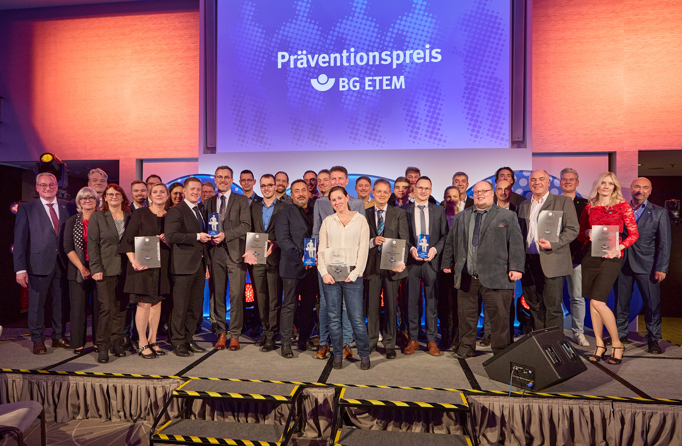 Elf Unternehmen konnten sich über Preise und Auszeichnungen freuen. Die Berufsgenossenschaft Energie Textil Elektro Medienerzeugnisse (BG ETEM) zeichnete sie für gute Lösungen im Arbeitsschutz mit dem Präventionspreis aus. Überreicht wurden die Trophäen und Urkunden am 8. Dezember in Köln. Die Verwendung dieses Bildes ist nur in Verbindung mit der Pressemitteilung und nicht zu anderen Zwecken gestattet. Foto: Tilman Lothspeich