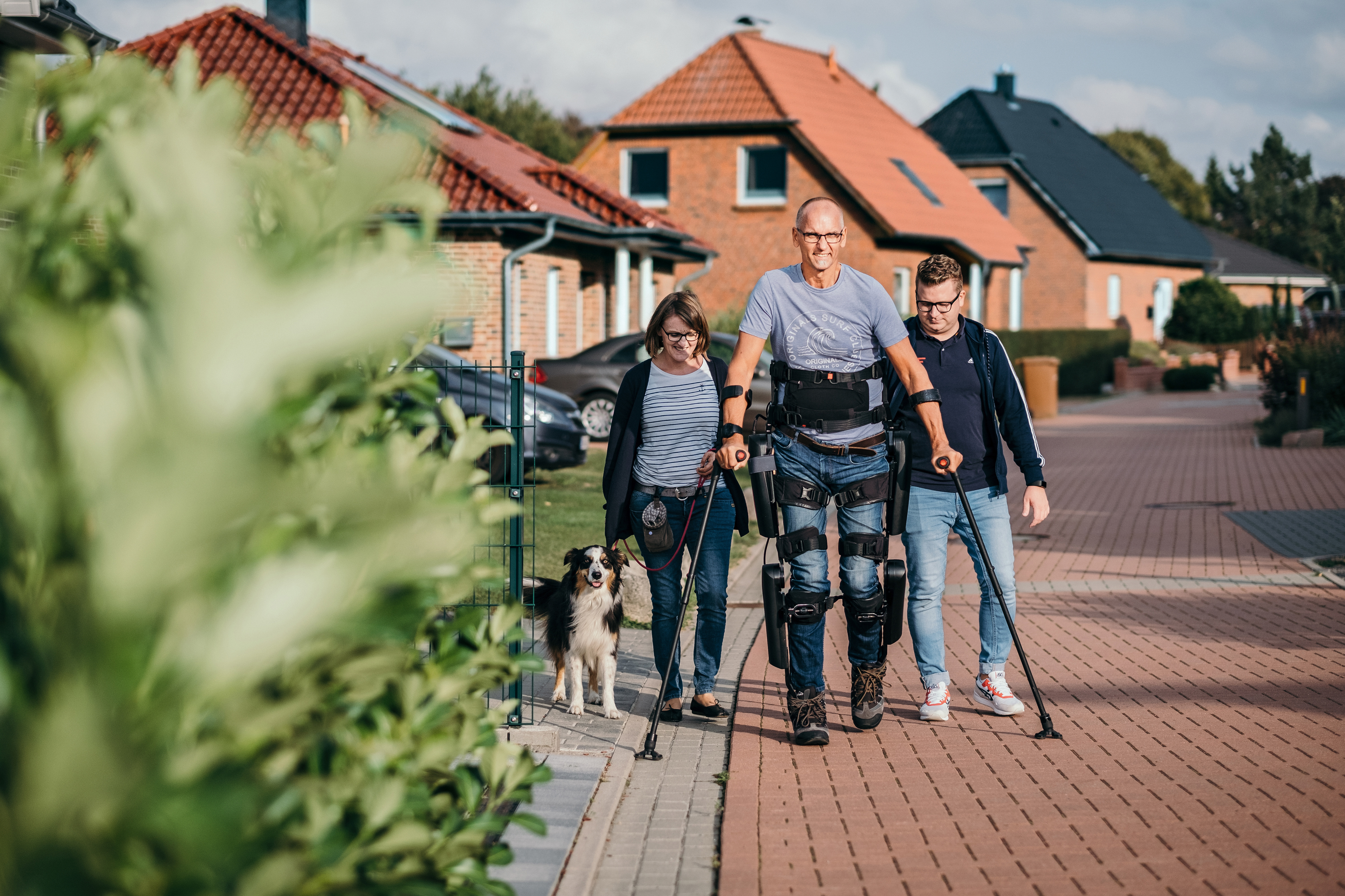 (05.03.2019) Seit einem Unfall auf dem Arbeitsweg saß Thorsten Röhrmann als Querschnittgelähmter im Rollstuhl, bis das Unmögliche wahr wurde: Endlich wieder stehen und gehen können. Doch der Weg zum eigenen Exoskelett ist sehr aufwendig. Sowohl medizinische als auch mentale Voraussetzungen müssen beim Patienten gegeben sein.