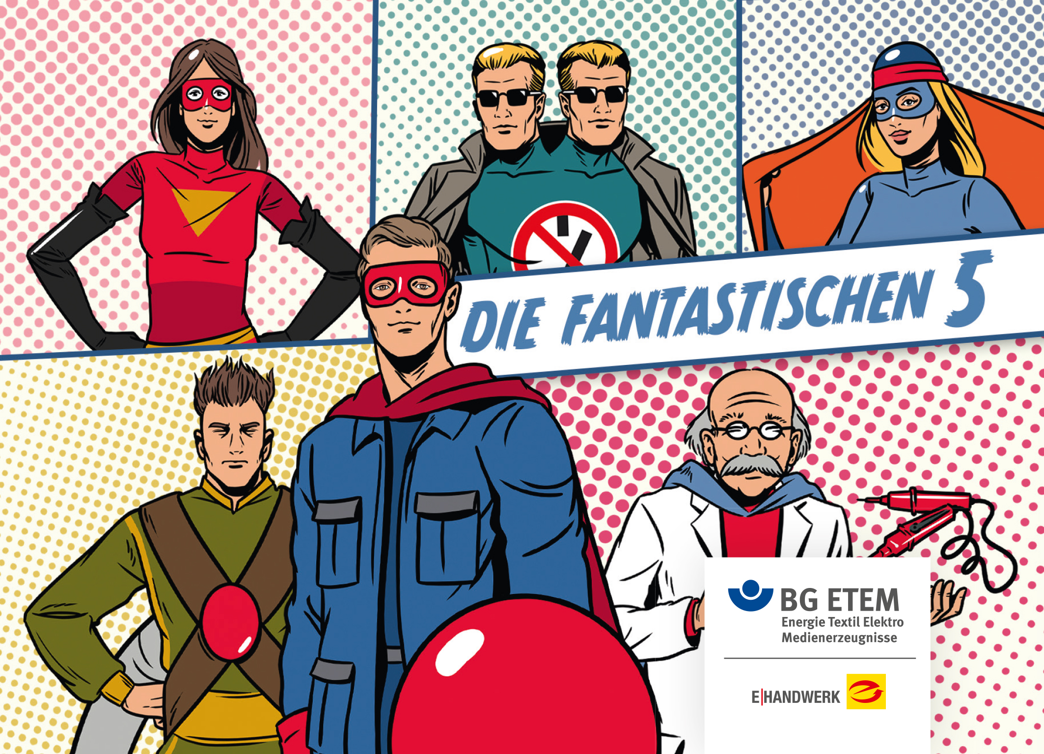 Die BG ETEM schickt fünf Superhelden los, um Aufmerksamkeit für die fünf Sicherheitsregeln zu schaffen. Sie verkörpern in einem Drei-Minuten-Video im Comic-Stil die fünf Sicherheitsregeln: Lady Safety sorgt für das Freischalten. Lock ‚n’ Tag kümmert sich darum, Anlagen gegen das Wiedereinschalten zu sichern. Die Spannungsfreiheit stellt Dr. Voltmeter fest. Erden und Kurzschließen ist die Sache von Earth. Cape deckt benachbarte, unter Spannung stehende Teile ab oder schrankt sie ab. "Die wichtigste Botschaft des Videos ist aber ganz klar: Der wahre Superheld ist jeder", unterstreicht Dr. Jens Jühling, "der die fünf Sicherheitsregeln in seinem Berufsalltag richtig anwendet."